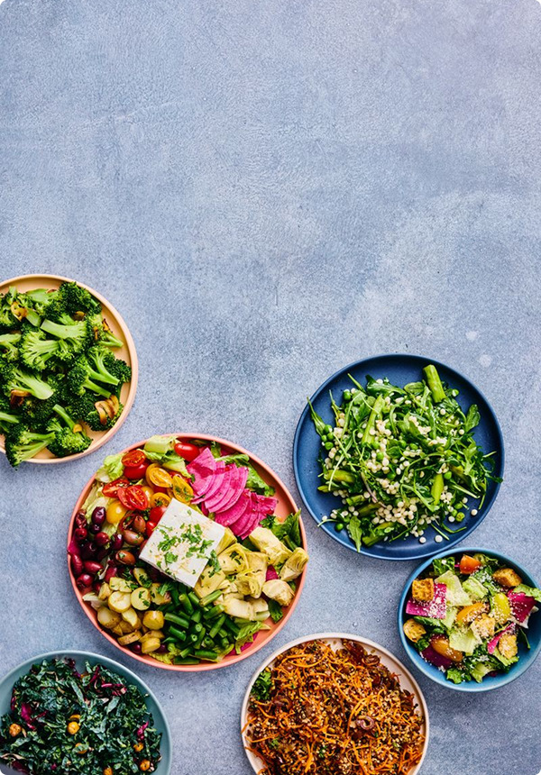The vegetables, grains and salads to mix and match into your routine. Each dish ranges from 1-4 servings based on how you're incorporating it.