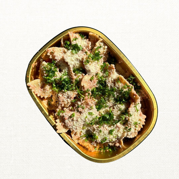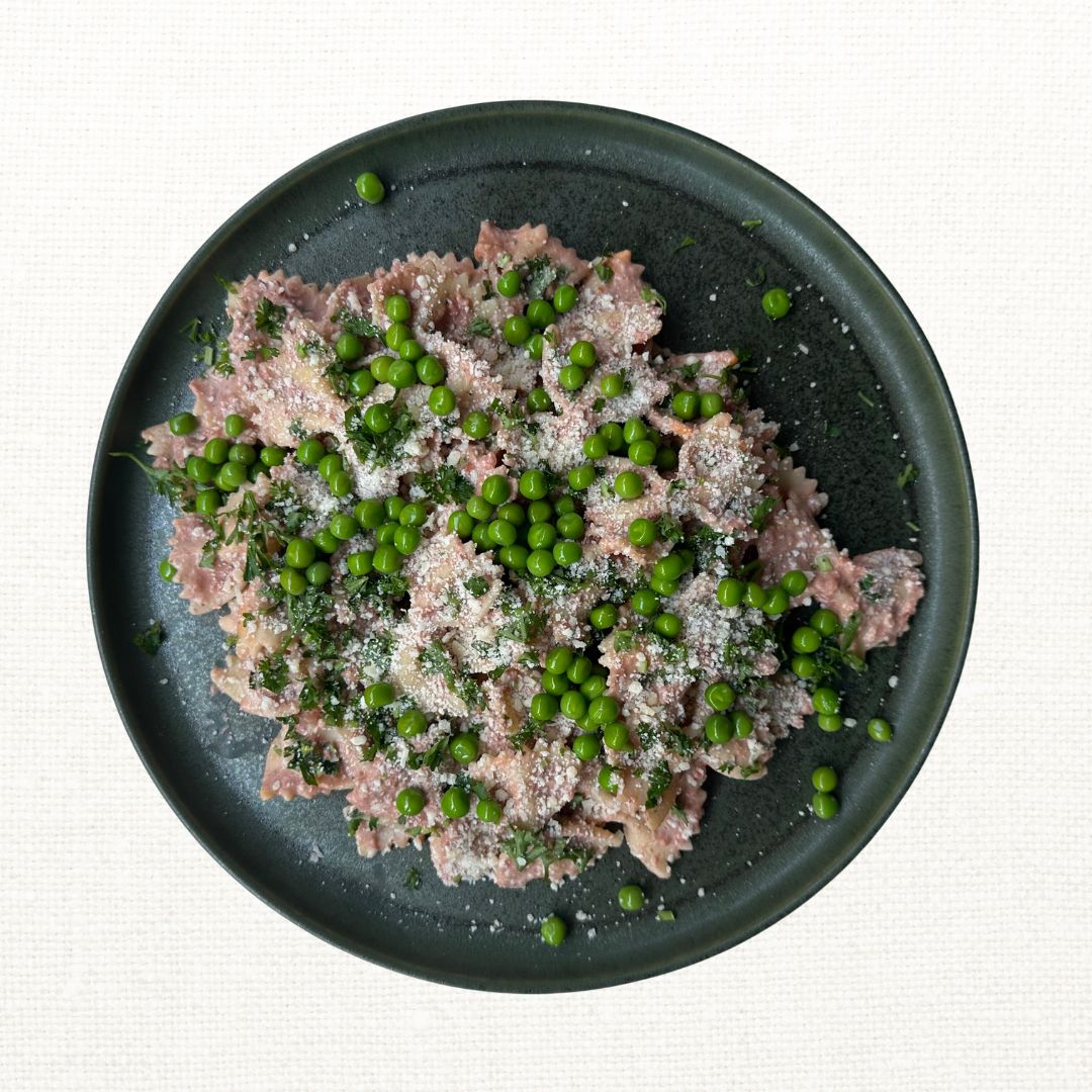 Does this one even need a description? The absolute classic, most likely to be scraped clean pasta dish there is: bowtie noodles with peas and a lightly creamy, Parmesan-y tomato sauce.