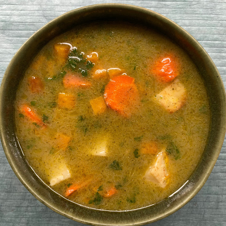 Chicken and vegetable soup with turmeric and ginger for delicious flavor, color and immunity support.