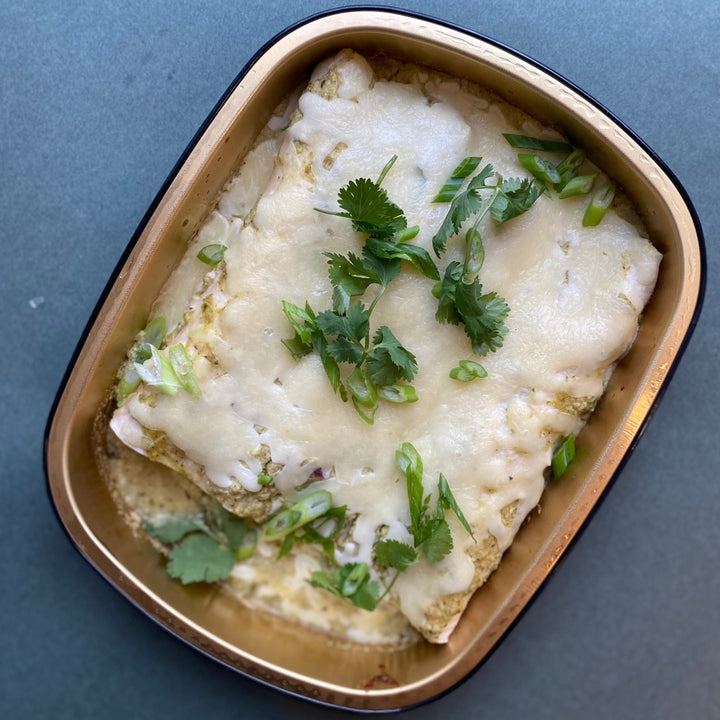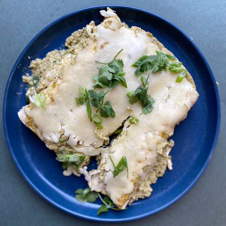 Cheesy baked enchiladas with a citrusy, green tomatillo sauce.