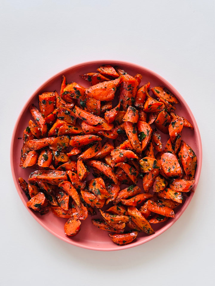 Za'atar roasted carrots with a touch of honey and herbs. Great hot, cold, as a side alone or tossed with grains or salads.