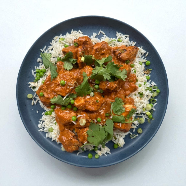 Our recreation of this classic Indian dish we love to order at restaurants: chicken thigh and breast braised in a fragrant tomato sauce with peas, garam masala, turmeric, and fenugreek, finished with Greek yogurt and served over basmati rice.