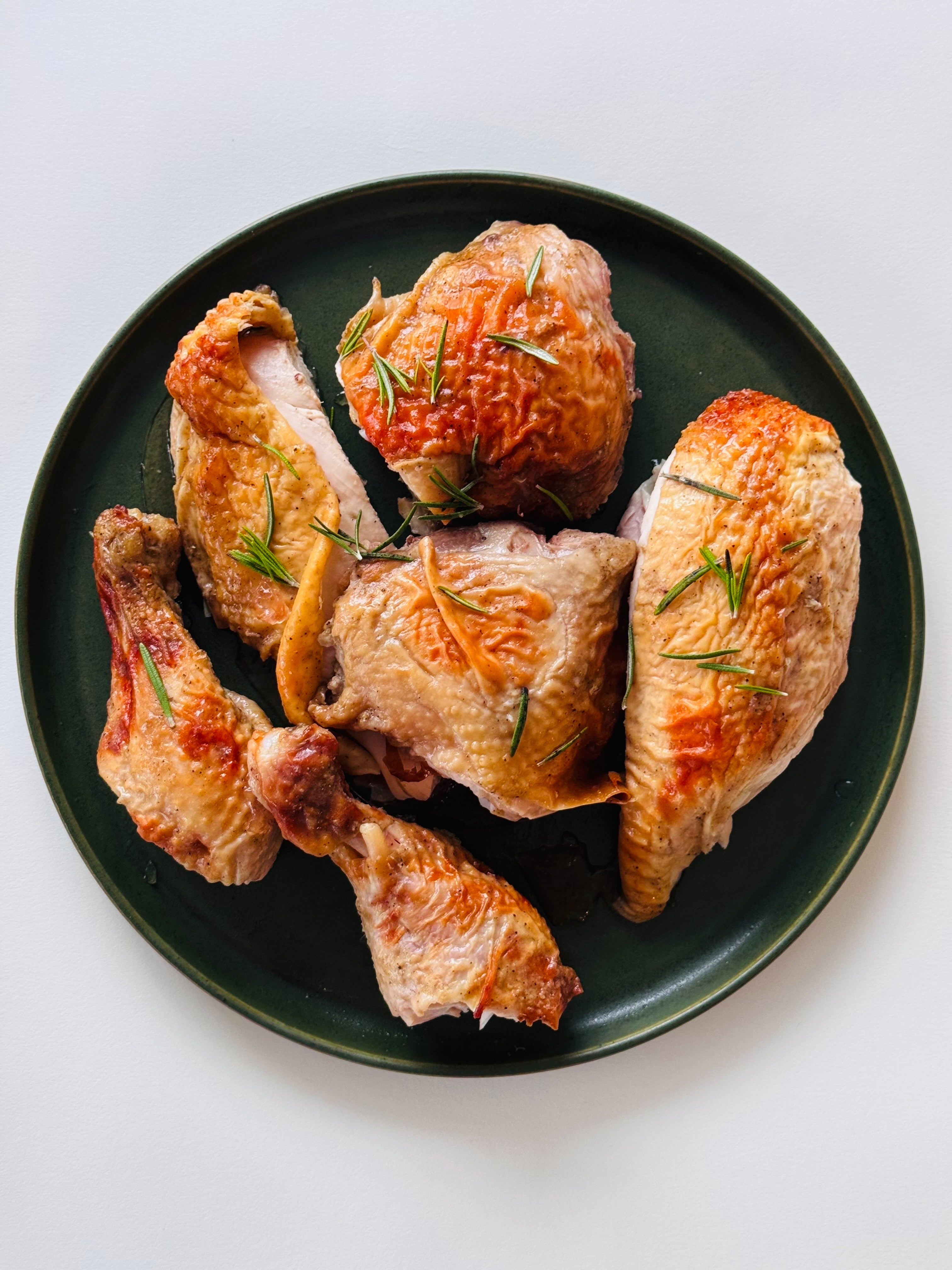 A whole chicken, brined with our fennel and orange brine, then marinated and roasted with a fig and Dijon glaze (with more alongside!).