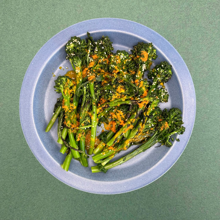 Simply cooked broccolini with a ginger, sesame, carrot, and soy vinaigrette.
