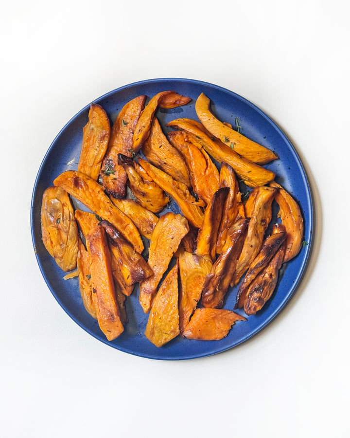 Cut giant steak-fry style, these sweet potato wedges are one of our favorite dishes to have at the ready in the fridge for cold weather. Toss into the oven or serve at room temperature for a quick side, salad addition, or little diner meal.