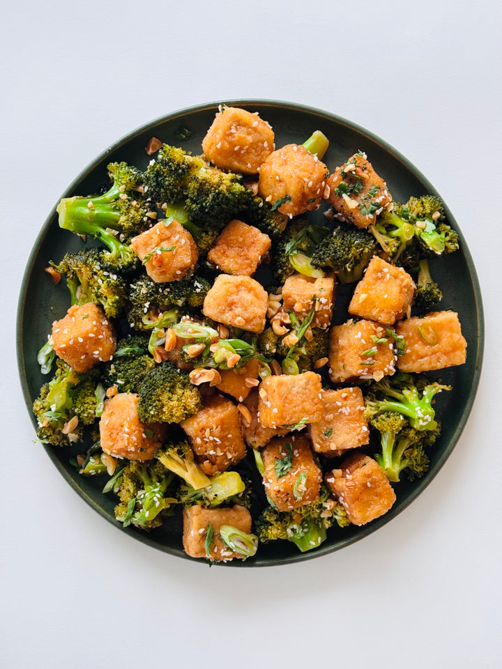 Crisp tofu and broccoli tossed in a light sweet and sour sauce made simply with sweet chili, rice vinegar, and soy - scattered with peanuts and scallions for crunch.